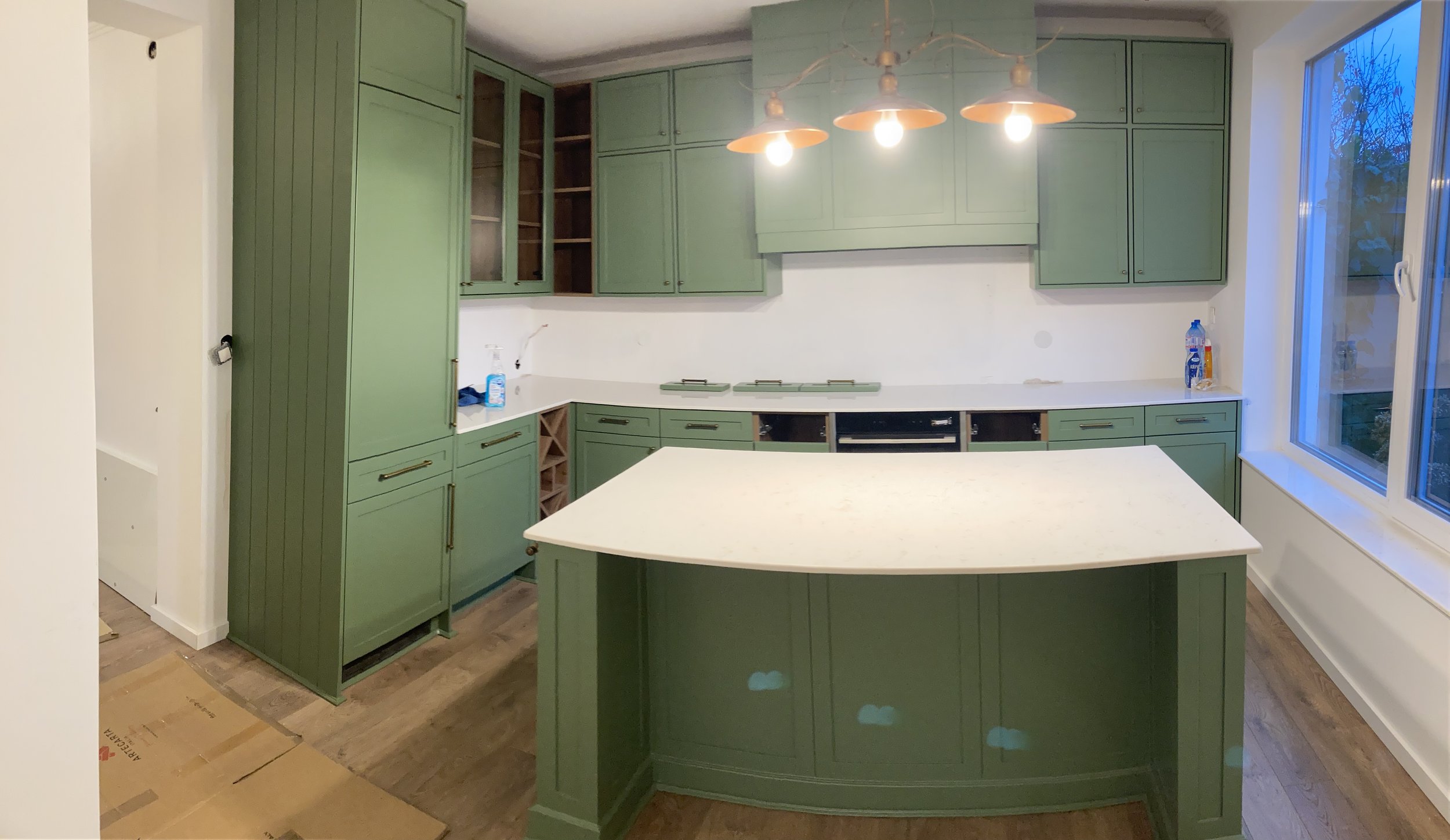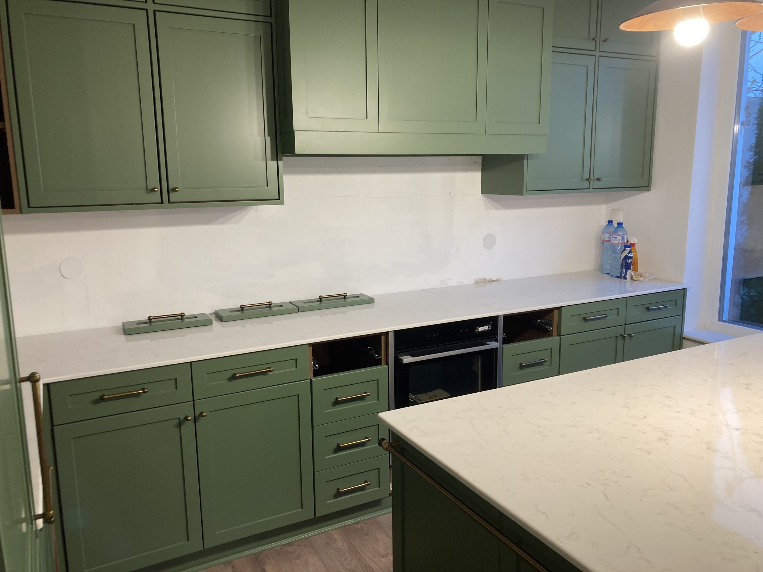 Проектът за кухня в зелено с дървени елементи е един от проектите, които истински обичаме. Дизайнерската кухня прави готвенето по-желано от преди.